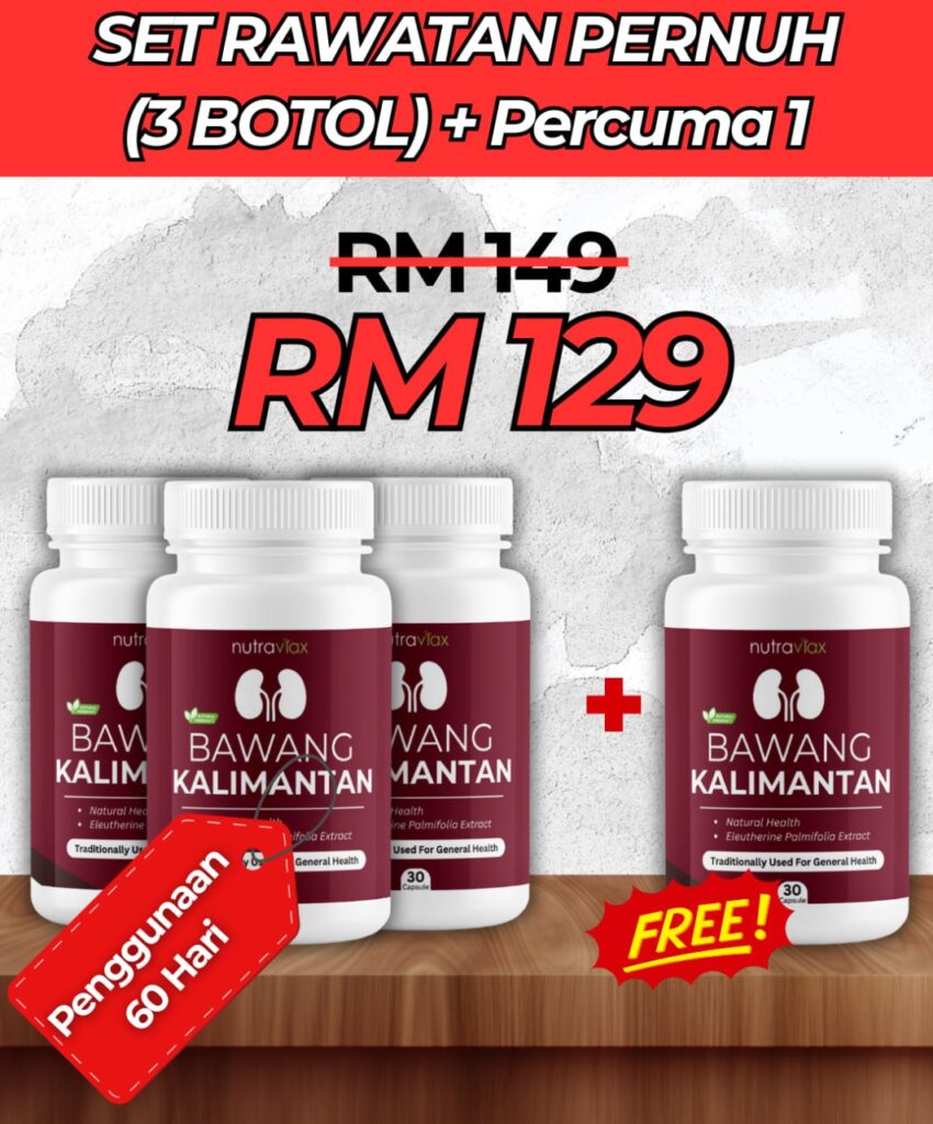 Anda buat rawatan penuh selama 60 hari bersama Bawang Kalimantan, jika tiada kesan kami bagi full moneyback guarantee tanpa banyak soal.