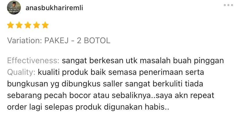 Kalau langsung tiada kesan, kami bagi 100% refund tanpa banyak soal.